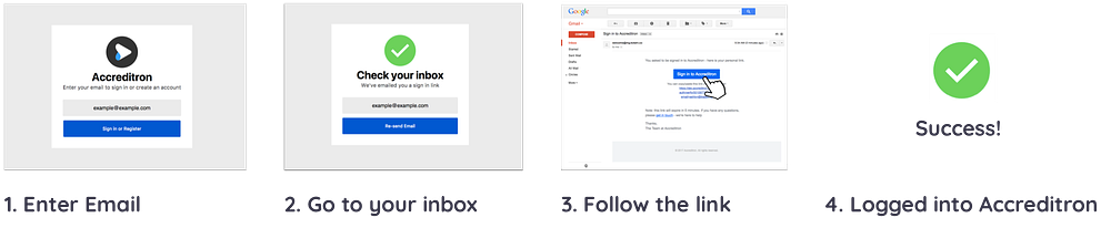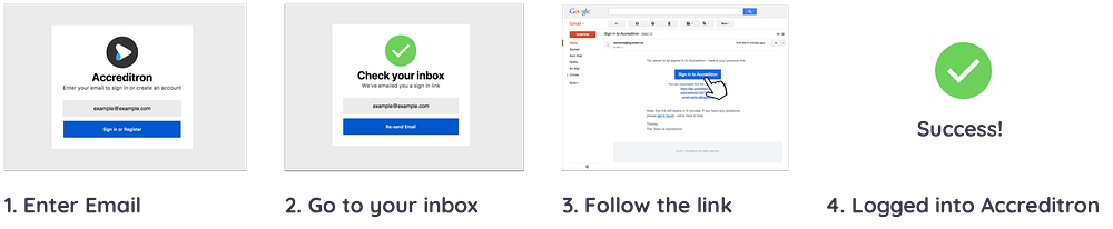 Finding: None of our users got stuck and they found the process easy to understand! While the passwordless login was a new experience for a number of the trial providers, the interface and simple directions on the initial screen for Accreditron was easy for them to follow.