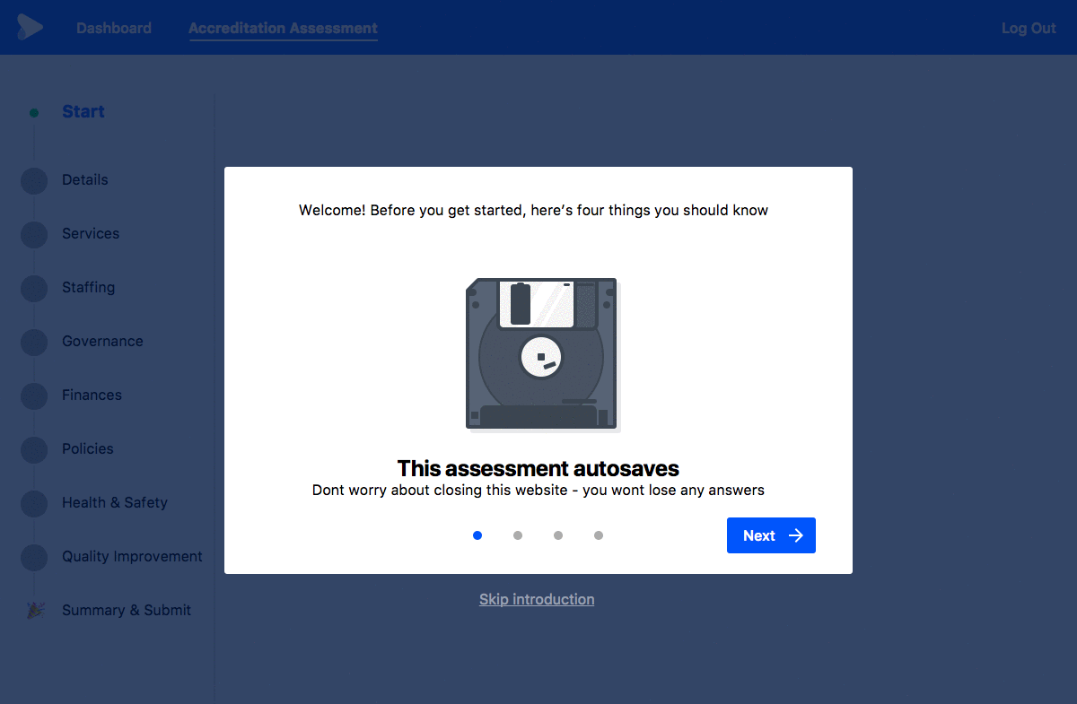 Result: This is a real win for Accreditron; it lets us know that users’ first interaction with the platform is not only intuitive but also that it is approachable enough for users to be guided through new processes without unnecessary frustration.